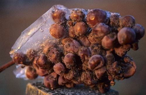 貴腐酒的名稱源自貴腐菌,當(dāng)葡萄受到這種霉菌感染時,表面就會布滿小小氣孔,使葡萄原有的水分漸漸變少,慢慢萎縮成扁扁的葡萄干,而此時,葡萄會自然呈現(xiàn)甜度集中的狀態(tài)。不過,想要讓貴腐菌對葡萄造成恰到好處的傷害,除了夜晚要有薄霧,隔日中午還必須要有陽光,此外,感染過程中,常會造成大量葡萄不能使用,也因此讓貴腐酒要價不菲。但甜如蜜的豐富香氣,使貴腐甜酒成為法王路易十四口中的王者之酒,就連在歌德的作品《浮士德》當(dāng)中,也曾迷戀的稱之為"生命之泉"。