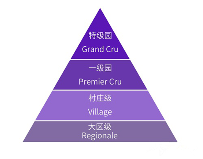 勃艮第葡萄園的分級示意圖
