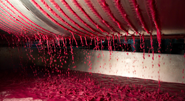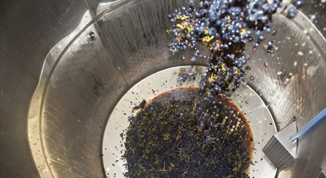 葡萄采收后會進行去梗和破皮,但這不是必須工序,因為有些酒莊會特意保留果梗,保持果實顆粒完整,以便進行整串發酵。破皮的過程需盡可能輕柔,避免破壞葡萄籽,釋放出苦油和單寧。