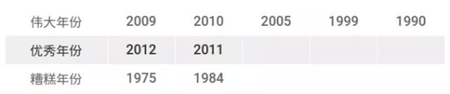 與波爾多產區類似,2005、2009、2010等年份都出類拔萃。不同的是,2011、2012、2013等波爾多葡萄酒表現不佳的年份,勃艮第卻表現優異,無怪乎最近幾年人們對勃艮第葡萄酒的興趣越來越濃厚。