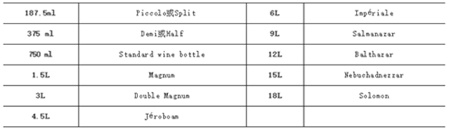 在如今琳瑯滿目的商店中,我們能選擇購(gòu)買的葡萄酒瓶涵蓋了從187ml-18L不等的尺寸,它們中的某些甚至還有著特殊的稱謂:
