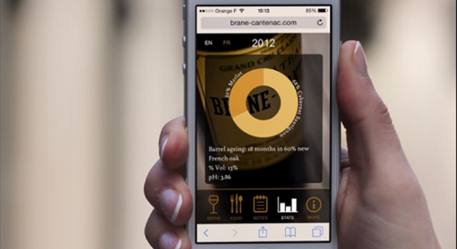 波爾多1855二級(jí)莊——布朗康田酒莊(Chateau Brane-Cantenac)自2010年起,便在每瓶葡萄酒的酒瓶上都加入了二維碼,消費(fèi)者通過(guò)掃描可獲得該酒款的品鑒記錄、適飲溫度和陳年潛力等重要信息。