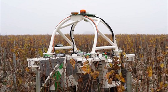 葡萄園除草機(jī)器人是較為常見(jiàn)和基礎(chǔ)的機(jī)器人,它們能夠快速精準(zhǔn)地去除雜草。除此之外,由于體型較輕且?guī)в兄悄茏R(shí)別功能的特點(diǎn),這類(lèi)機(jī)器人對(duì)土壤和生態(tài)的破壞極小。2017年,與木桐酒莊(Chateau Mouton Rothschild)同門(mén)的克拉米倫酒莊(Chateau Clerc Milon)便在其葡萄園內(nèi)測(cè)試了一款叫作“泰德(Ted)”的除草育土機(jī)器人。