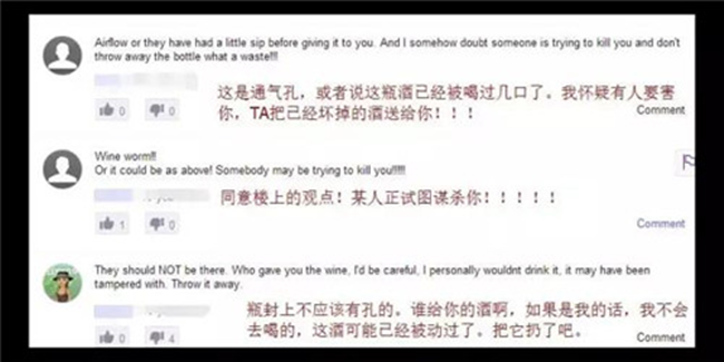 然后,有些網友就炸了,認為這酒已經被人動過了,甚至有人認為這是謀殺!