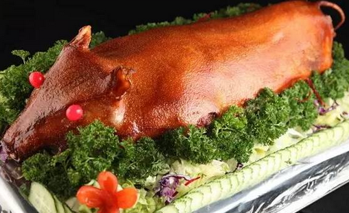 制作烤乳豬的時(shí)候先將內(nèi)臟去掉,取香料腌制入味,再進(jìn)行烤制,另外,豬皮含大量膠原蛋白,有養(yǎng)顏健膚功能。乳豬較瘦,脂肪含量少。色澤紅潤,光滑如鏡,皮脆肉嫩,香而不膩,讓你百吃不厭。