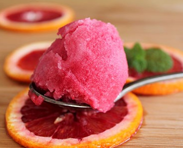 阿斯蒂莫斯卡托起泡酒(Moscato d'Asti)是血橙雪芭的絕配。事實上,這種半甜起泡酒適合搭配任何一種雪芭。把莫斯卡托起泡酒澆在血橙雪芭上,你就得到了一杯清爽怡人的浮動雪芭。而且,這種起泡酒的酒精度只有6%,你不用擔心會喝醉。