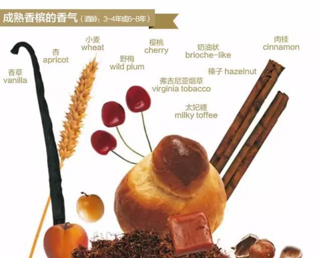 成熟賦予了葡萄酒新鮮圓潤的風味,包括柔和的黃色水果、烹煮味、干果和水果利口酒、法式糕點、糖果、香料和植物的氣味。