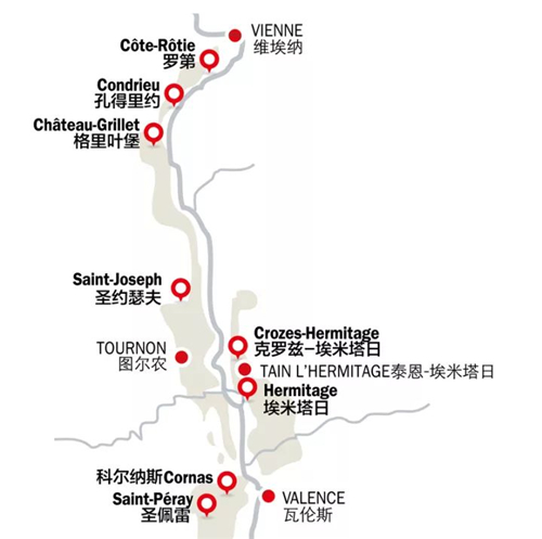北羅納河谷最有名的產(chǎn)區(qū)當屬羅第(Côte-Rôtie)產(chǎn)區(qū)和埃米塔日(Hermitage)產(chǎn)區(qū)。