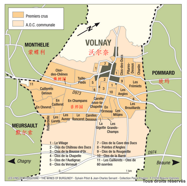 和很多伯恩丘的酒村一樣,沃爾奈沒有特級(jí)園(Grand Cru),但有幾塊一級(jí)園(Premier Cru)出產(chǎn)的葡萄酒品質(zhì)出色,有著“準(zhǔn)特級(jí)園”的稱號(hào)。