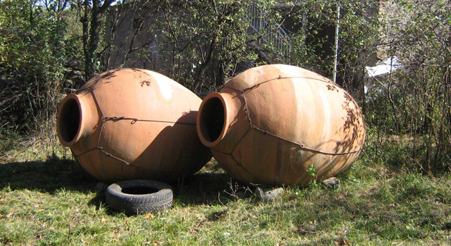陶罐是一種非常古老的釀造容器,用陶罐陳釀的葡萄酒充滿了復古氣息,如今鮮少有酒莊使用陶罐,但這也不妨礙人們了解它的步伐。如今最常用于釀造葡萄酒的陶罐有三種,分別是羅馬雙耳瓶(Roman Amphora)、格魯吉亞的奎弗瑞罐(Qvevri)以及西班牙的迪那哈罐(Tinaja)。其中,羅馬雙耳瓶是三種陶罐中使用率最高的一種,它最顯著的特征是細窄的瓶身、尖底和瓶子上端的一對握把;奎弗瑞罐的體積十分巨大,直立時高度可以超過正常成年男性的身高,如今,格魯吉亞的葡萄酒產區仍在使用這類陶罐釀造葡萄酒;迪那哈罐是一種較為罕見的橢圓形陶罐,它的罐口與罐底都十分狹窄,在傳統上多用于儲存葡萄酒。