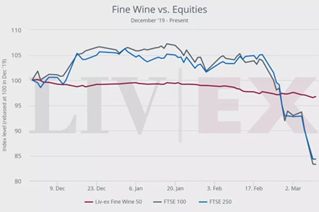 3月14日,liv-ex發(fā)布了一周葡萄酒交易市場(chǎng)報(bào)告,報(bào)告稱(chēng)在全球疫情蔓延情況下,上周全球股市遭受?chē)?yán)重打擊,但優(yōu)質(zhì)葡萄酒卻一直相對(duì)穩(wěn)定。