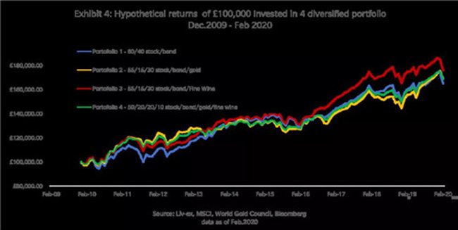 圖表顯示,含有精品葡萄酒的投資組合收益回報(bào)相比更高