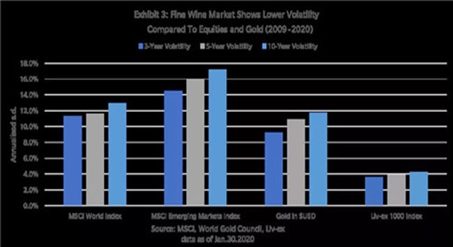 一言以蔽之,精品葡萄酒在投資市場(chǎng)上波動(dòng)性較小、收益回報(bào)在平均水平之上,總體穩(wěn)中向好。在全球股市震蕩之下,精品葡萄酒投資的這番表現(xiàn)頗有“獨(dú)善其身”的意味。