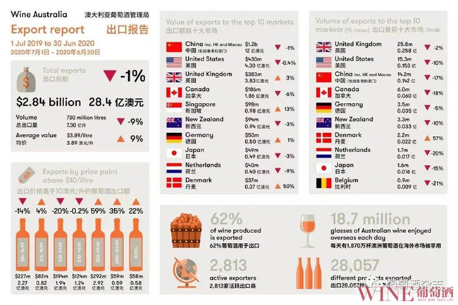 8月5日,澳大利亞葡萄酒管理局發(fā)布截至2020年6月的最新出口報(bào)告。
