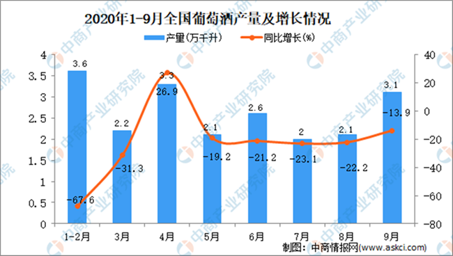 2020年1-9月全國葡萄酒產量統(tǒng)計