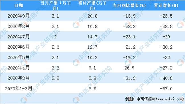據中商產業(yè)研究院數據庫顯示,2020年9月全國葡萄酒產量增長,2020年9月全國葡萄酒產量為3.1萬千升,同比下降13.9%。2020年1-9月全國葡萄酒產量為20.8萬千升,同比下降23.5%。
