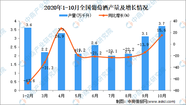 • 2020年1-10月中國葡萄酒產量數據統計分析