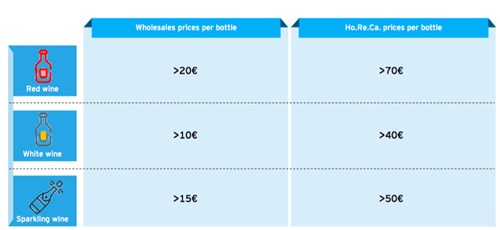 該報告的研究主體是“Top Wines”,也就是那些在餐飲渠道中,批發價格高于每瓶20歐元,零售價格高于每瓶70歐元的紅葡萄酒;批發價格高于每瓶10歐元,零售價格高于每瓶40歐元的白葡萄酒和批發價高于每瓶15歐元,零售價高于每瓶50歐元的起泡酒。