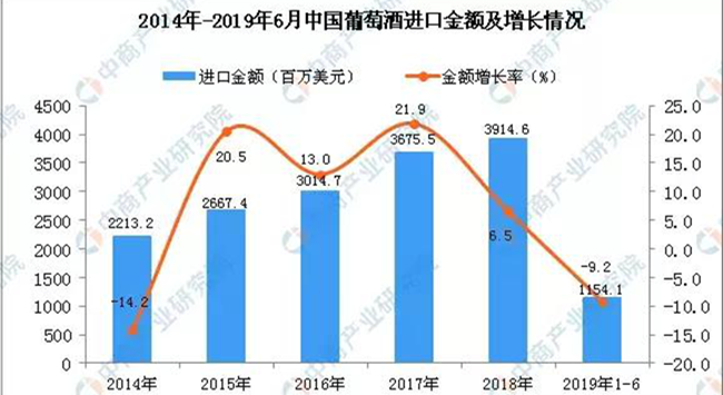 • 2019上半年中國葡萄酒進口量下降12.9% 量額雙降