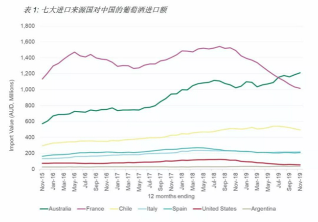 截至2019年12月底的12個(gè)月中,澳大利亞葡萄酒對(duì)中國(guó)市場(chǎng)(包括香港和澳門(mén))的出口額增長(zhǎng)12%,創(chuàng)下12.8億澳元新高,出口量下滑17%至1.42億升 (等量于1580萬(wàn)箱9升裝)。平均出口額增長(zhǎng)35%至8.99澳元(每升離岸價(jià))。澳大利亞葡萄酒對(duì)中國(guó)市場(chǎng)的出口總額及平均出口額雙雙創(chuàng)下了年度新高。