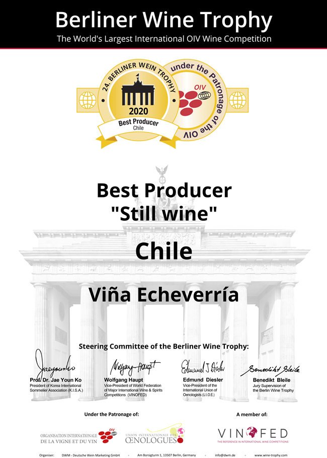 (2020柏林葡萄酒大獎賽-智利最佳生產(chǎn)商 榮譽(yù)證書)
