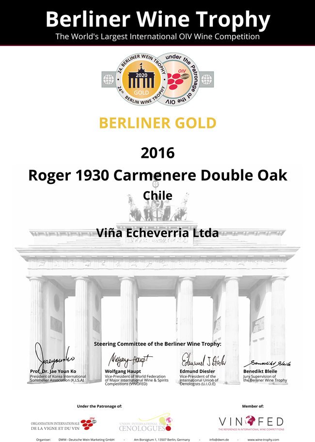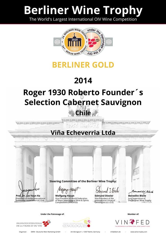 (羅吉爾1930-羅伯特——2020柏林葡萄酒大獎賽金獎 榮譽(yù)證書)